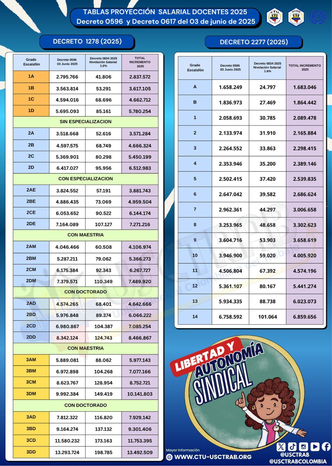 CTU – USCTRAB informa sobre la remuneración salarial para el año 2025 de los servidores públicos docentes y